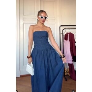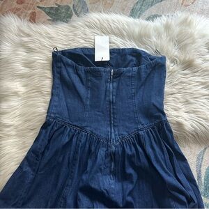 ZARA Strapless Denim Basque Waist Midi Dress