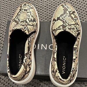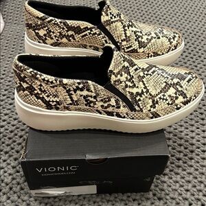 VIONIC KEARNY PLATFORM SLIP ON SNEAKER Ivory Leather Snake 6 Wide