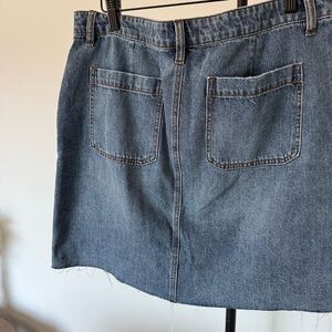 KUT from the Kloth denim mini skirt with a flattering mid-rise fit and easy, everyday feel. Features front patch pockets, a lightly distressed wash, and a raw hem for a relaxed, lived-in look. Super versatile—pair with tees, sweaters, or blouses year-round. Size 10, good pre-owned condition.