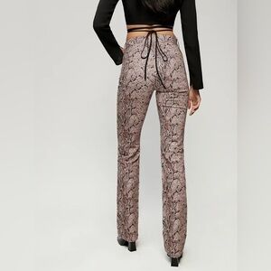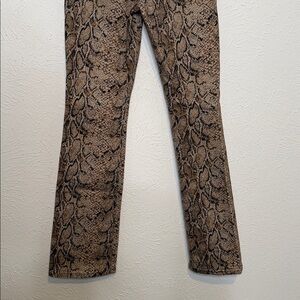 These are a statement pair with a super flattering high-rise and a bootcut leg that elongates your shape perfectly. Chic neutral snake pattern that works year-round.
