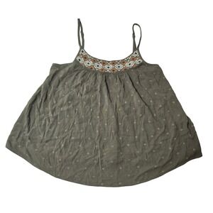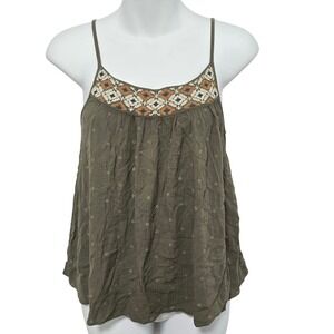 American Eagle Olive Green Embroidered Boho Cami Tank Top