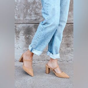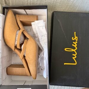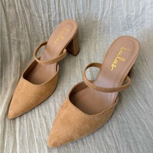 NEW Lulus - Women's Camel Suede Block Heel Mules