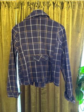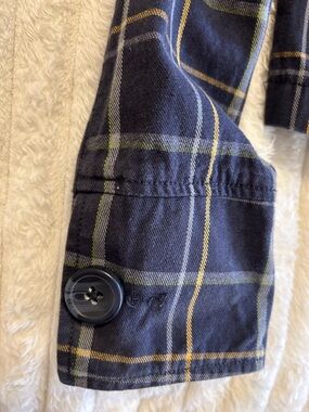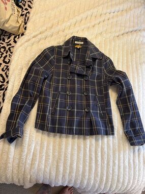 Vintage Aeropostale Double-Breasted Plaid Women's Peacoat Jacket - Navy & Yellow