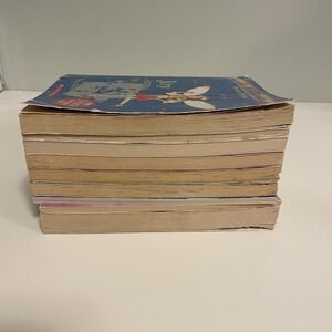Books are in mixed condition. There are a few in the lot that have scuffs or bent pages but are still readable.