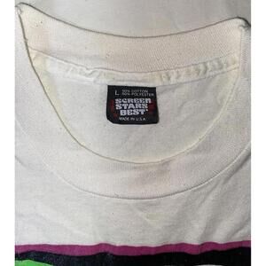 This vintage t-shirt is a must-have for any 90s enthusiast. Featuring a solid pattern with short sleeves and a crew neckline, this shirt is made of a comfortable blend of polyester and cotton. The white color and JERZEES brand logo make it a great addition to any casual outfit.