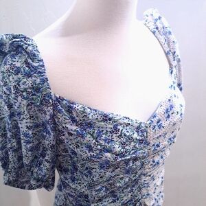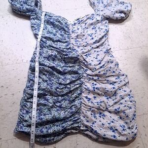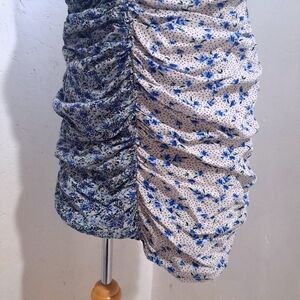 Chic floral ruched mini dress with a stylish design. Perfect for any occasion. womens size large pre owned, lightly used condition