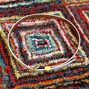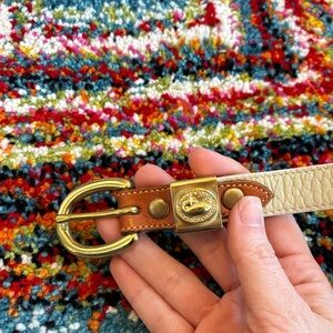 Dooney & Bourke Cream Leather Belt with Brown Accent and Gold Hardware