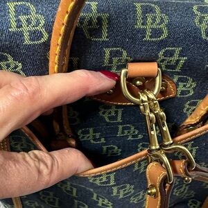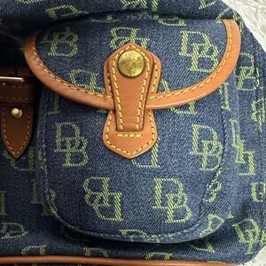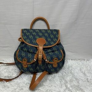 Dooney & Bourke Vintage Navy and Tan Signature Backpack Excellent Condition