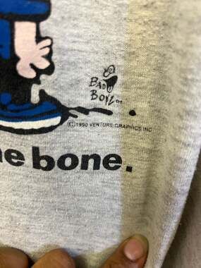 Vintage 1990 Bad Boyz 'Bad to the Bone' Calvin T-Shirt, fits like large— Made in USA.