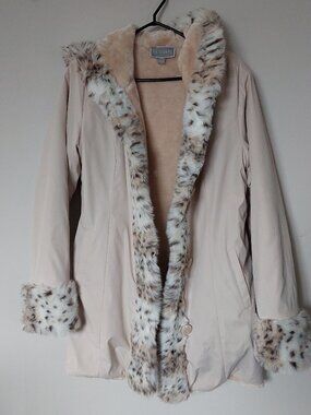 Guillaume Reversible Faux Fur Winter or Teddy Coat Trim & Hood Women's M Pink