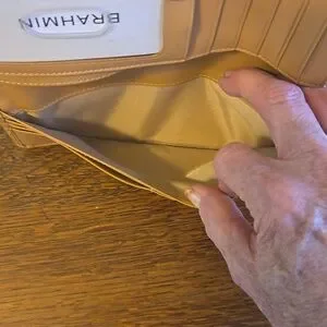 Beautiful Brahmin Ady Wallet in a gorgeous camel/creme colored Talitha leather.