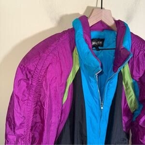 Keep warm and stylish with the ski Jacket. Featuring a vibrant purple and blue design, this jacket is perfect for any adventure.