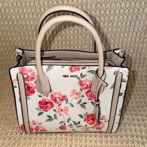 Nine West White Satchel with Pink Floral Print
