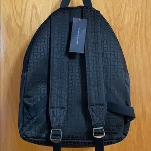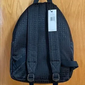 NWT Tommy Hilfiger Black Backpack with Red Trim and Logo Jacquard