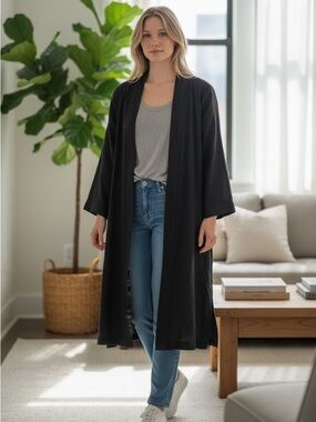 Ideal for people looking to stock versatile, easy-to-style pieces, the Rhea Solid Print Duster is perfect for resortwear, everyday layering, or boho-chic collections. Pair it with jeans, shorts, or flowy dresses for a graceful, relaxed finish.