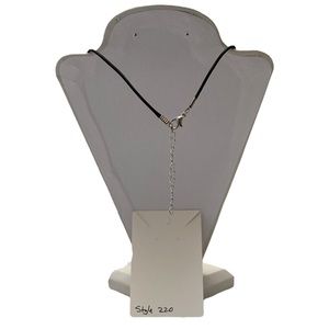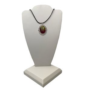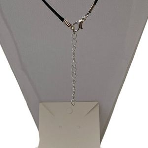The setting is metal. The pendant is approximately 1 inch and the necklace cord is 20 inches plus 2 inches extender chain. This necklace is one of a kind.