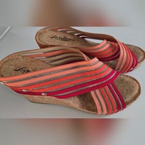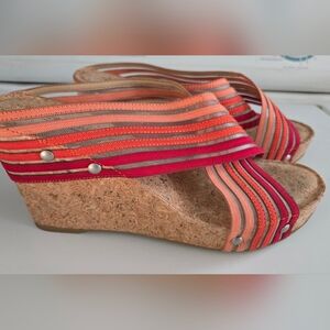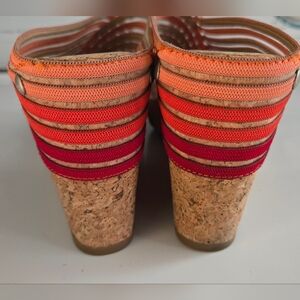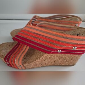Lucky Brand Cork Wedge Sandals Strappy Boho Slides Size 7.5 8 Multicolor Orange