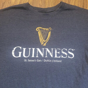 Navy blue t-shirt featuring the Guinness logo. Comfortable and stylish.