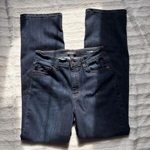 • Judy Blue classic straight fit dark blue navy jeans w/ button & zip front closure, 2 front pockets & 2 back, & a stretchy material.