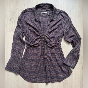 Free People We the Free Catalina Ruched Plaid Front hook Button-Front Women Top