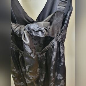 Japna Black Floral Satin V-Neck Mini Dress