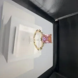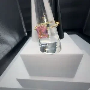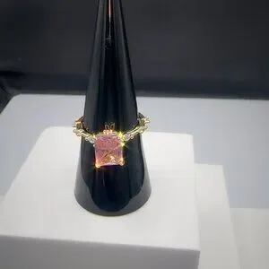 Gemstone Ring Pink Radiant Cut Gold Plated Brass Size 5