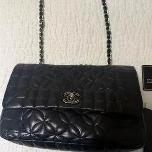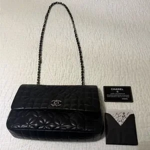 CHANEL Black Quilted Leather Shoulder Bag with Silver CC Lock