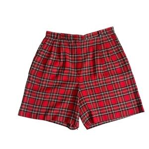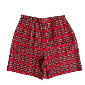Elevate your holiday wardrobe with these classic vintage red plaid ladies shorts. High rise with belt loops, slit front pockets, front pleats and flat back. Perfect for a stylish and festive look. Made in the USA