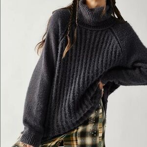 Free People Big City Turtleneck Sweater L Charcoal Soft Cozy Fall Winter Classic