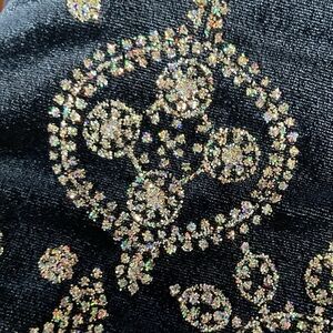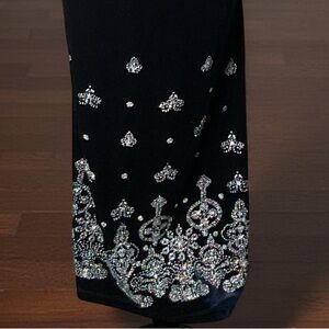 The embellishments on the bottom are stunning and iridescent. Very sexy strappy,crisscross back,slit up the side. ❤️ Unlined. This is absolutely stunning, it sparkles beautifully. This is a formal gown and is a showstopper! This would be lovely with long velvet or satin gloves for a glamour girl look. 💕