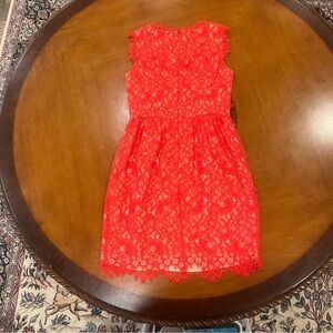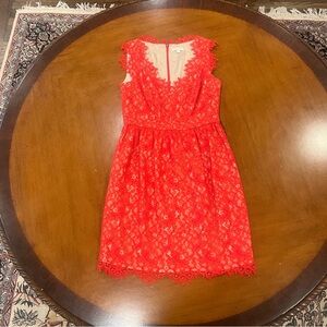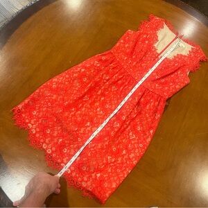 Shoshanna Sierra Lace Mini Party Dress Red 2 Sleeveless Nude Lining V-Neck