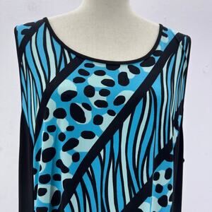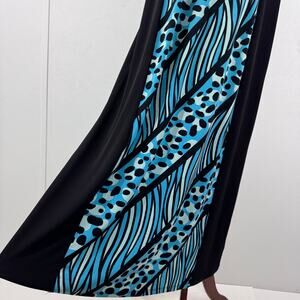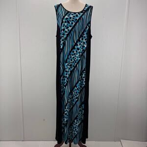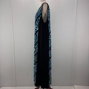 Bob Mackie Artistic Blue Black Maxi Dress Sleeveless XL Mobwife Tropical Summer