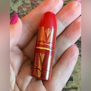 Vivid MAC red lipstick “Money Maker”with a creamy finish.