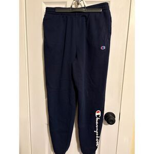 Champion Women’s XL Navy Fleece Sweatpants – Script Logo, 28" Waist -Unstretched