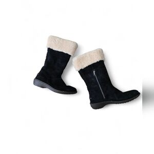 Material: Suede upper, wood platform heel