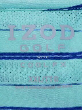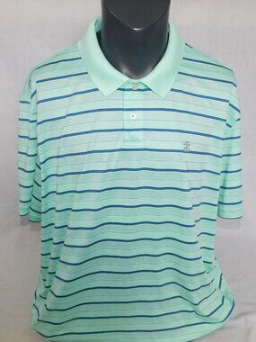 IZOD Golf Mens 2XL XXL Sea Foam Green Blue Striped Polo Shirt