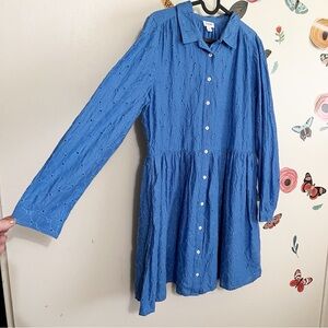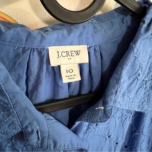 J. Crew Eyelet Blue Long-Sleeve Shirt Dress 10
