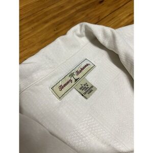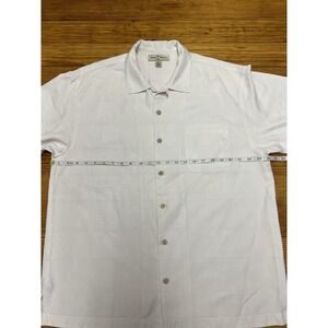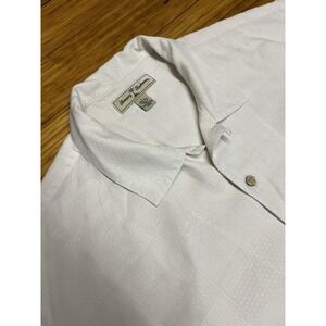 Tommy Bahama Loop Collar Men Short Sleeve Hawaiian Shirt Beige 100% Silk Large