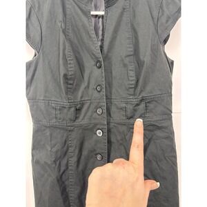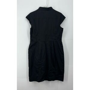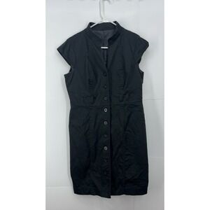 This is a Calvin Klein black dress that appears that it had a belt that came with it originally however it is missing. You can still add a belt to it. It has buttons that go from top to bottom it has cap style sleeves is gently used. The size tag has been removed. It's smoke free pet friendly home. Measurements are in photos. I estimate between a medium and a large