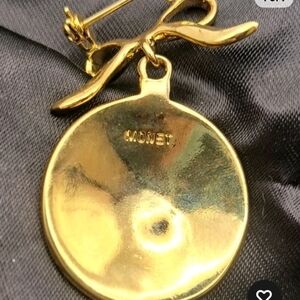 This vintage Monet brooch features a stunning goldtone and red design, adorned with sparkling crystal accents. Perfect for adding a touch of elegance to any outfit.