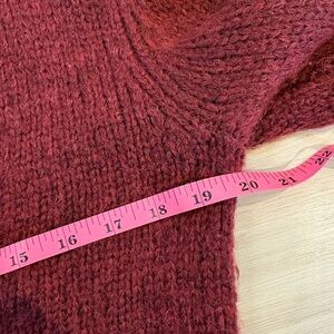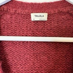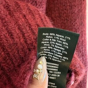 Cropped V-neck cardigan with three front buttons. Soft, textured knit fabric, including alpaca! Simple silhouette for easy layering. Rich wine color adds warmth. It’s in excellent condition. Never wore it but it’s so beautiful XS