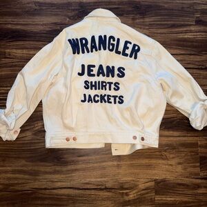 Wrangler White Denim Jacket with Navy Lettering