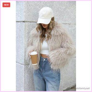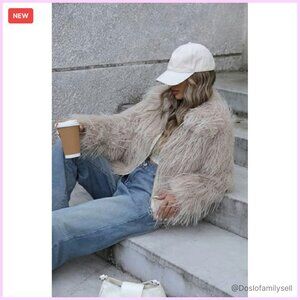 Shaggy Faux Fur Jacket Cropped Style Plush Outerwear Winter Fall Fashion