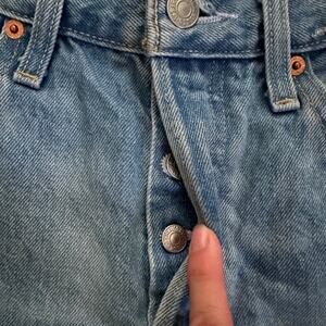 Levi’s Blue Distressed Denim Jean Short Size 27 raw hem cut out 100% cotton
