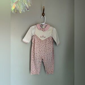 The Lullaby Club Vintage Pink Floral Overall Shirt Two Piece Set Size 12 months