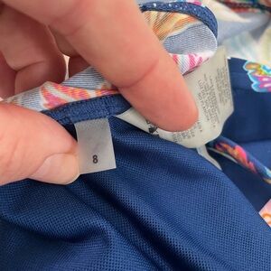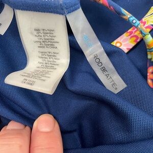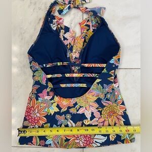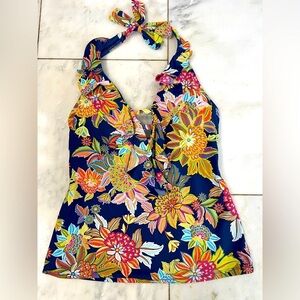 Bleu by Rod Beattie, womens 8, tankini top ruffles halter neck floral navy blue