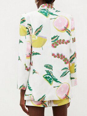 Embrace vibrant summer vibes with this multicolor casual tropical fruit print oversized suit jacket and skort set, perfect for late‑fall outings. The jacket features a sleek lapel neckline, regular sleeves and a lined interior for added comfort, while the matching skort offers unlined mini‑shorts with functional pockets and a regular fit. Designed without a belt, the ensemble balances relaxed style and playful pattern, making it an eye‑catching choice for everyday wear.