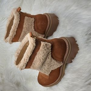 Leather, suede & faux fur upper