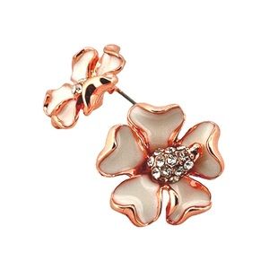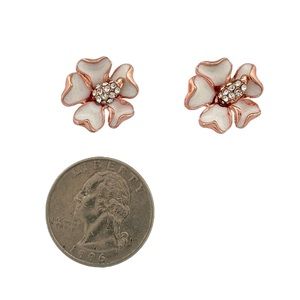 Flower Stud Earrings - Vintage Inspired White and Rose Gold Earrings
