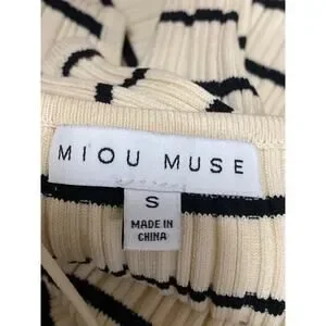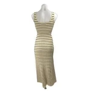 Miou Muse Women's Cream Black Stripe Ribbed Sleeveless Maxi Tank Dress Size S